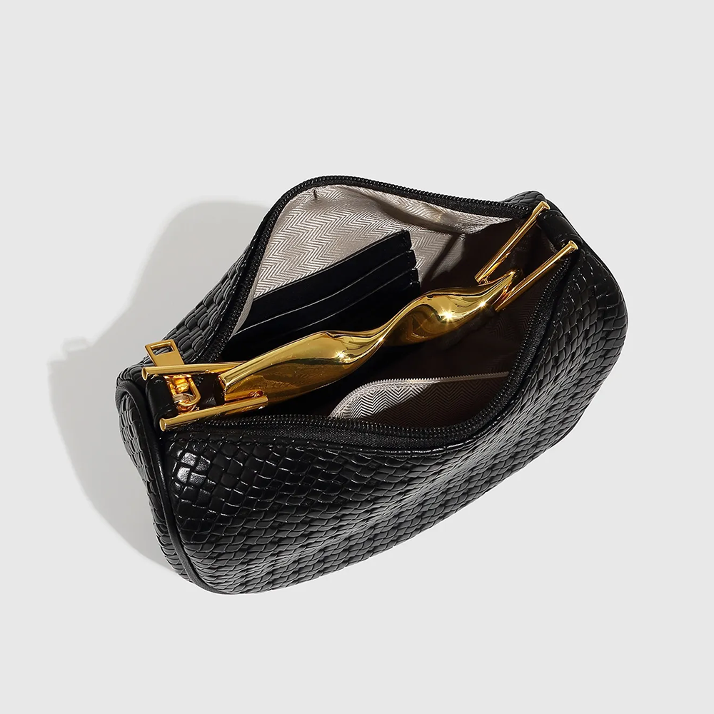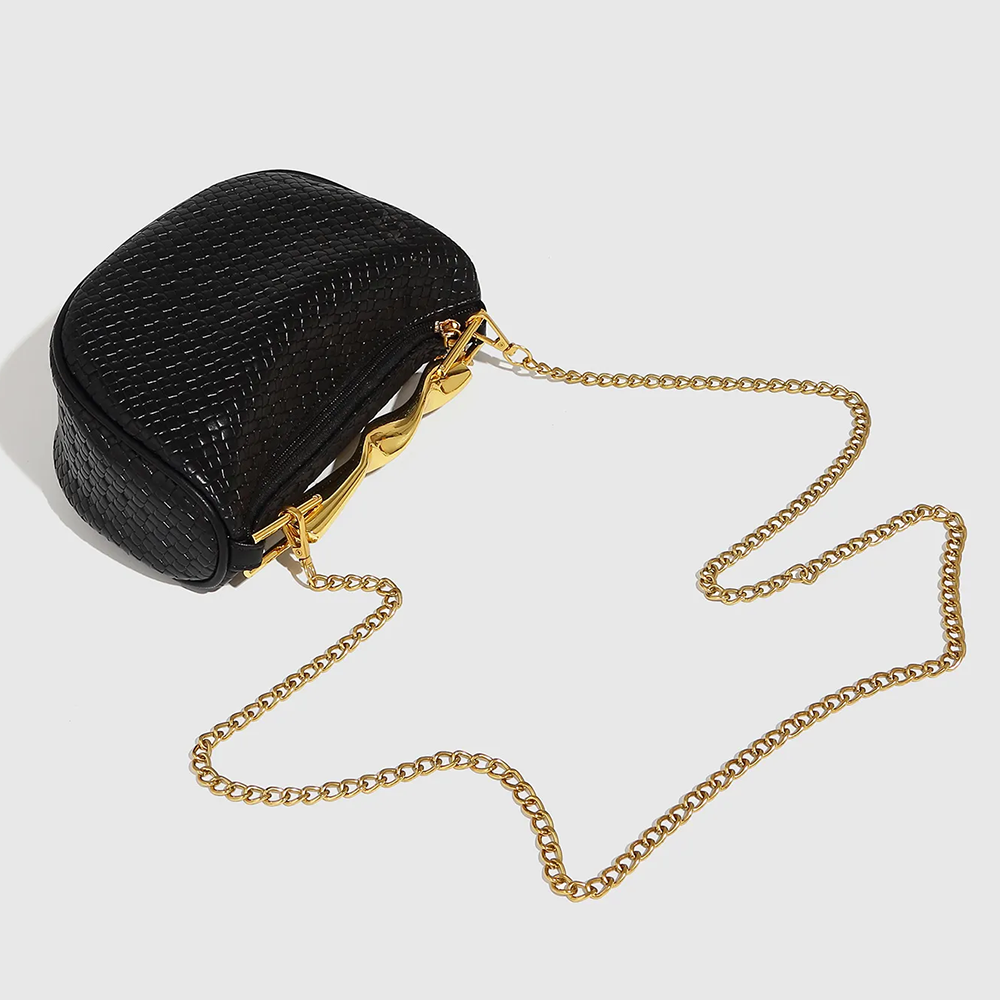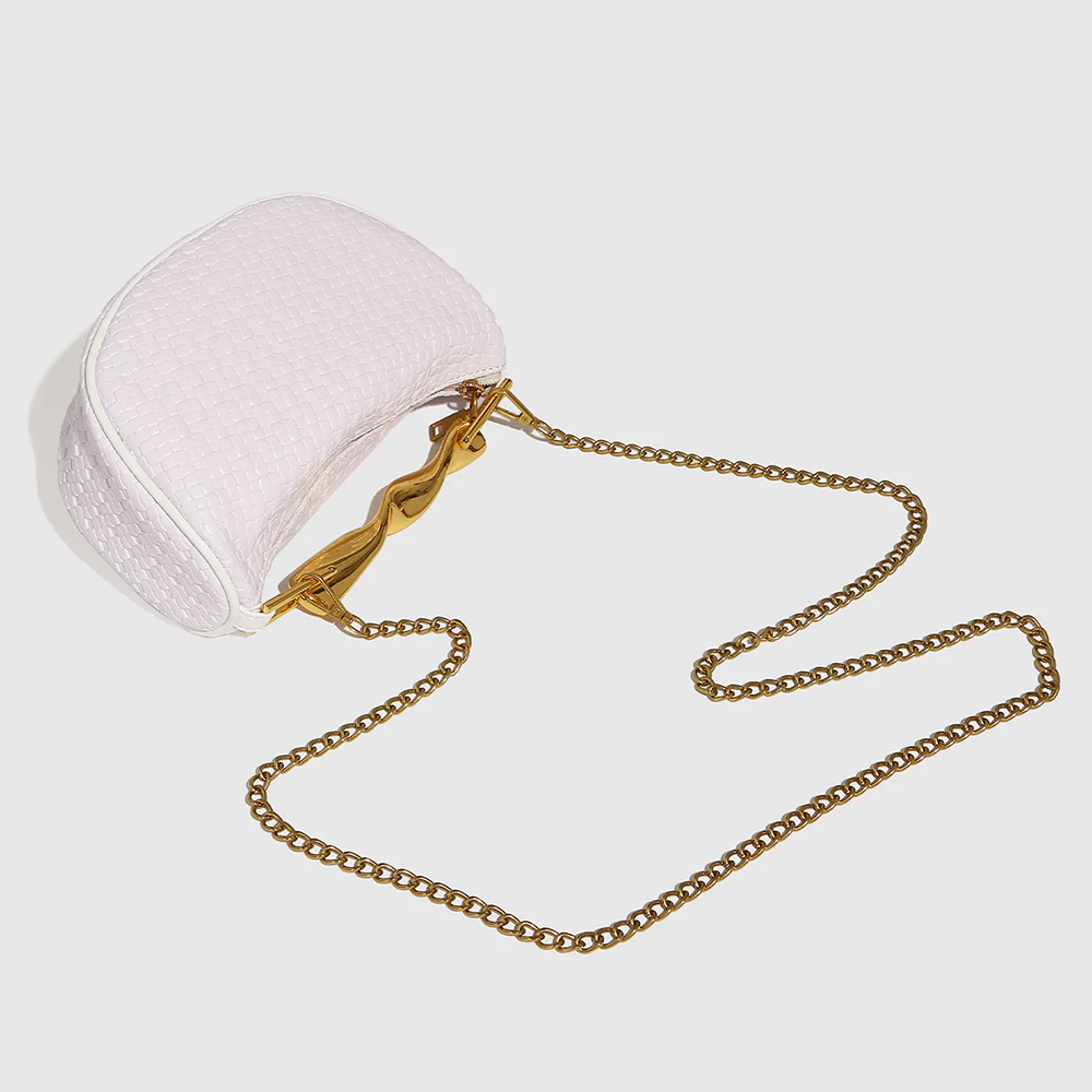 Bei KASANEL haben wir MUSE für die Frau entworfen, die mühelos strahlen möchte. Ob Sie die Tasche am gedrehten Goldgriff für einen eleganten City-Chic-Look tragen oder die zarte Kette für maximale Bewegungsfreiheit nutzen – sie zieht Blicke auf sich und regt zum Gespräch an. Sie vereint die handwerkliche Kunst des Flechtens mit der Modernität von Metall auf perfekte Weise.