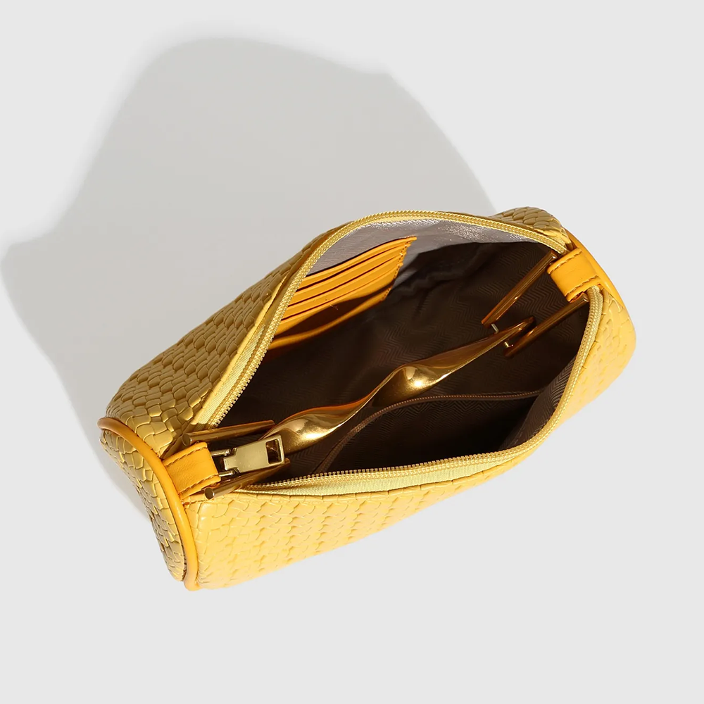 • Trendige Textur: Die geflochtene Oberfläche (Intrecciato- oder Strohoptik, je nach Modell) verleiht dem Stoff Relief und Charakter und fängt das Licht aus allen Winkeln ein.