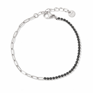 Le Bracelet Maillons LUMEN est un mariage audacieux de textures. Il combine la modernité structurée de la chaîne à maillons (paperclip) avec la brillance classique et délicate d'une ligne de micro-cristaux (micro-tennis). Ce contraste est la signature d'une élégance contemporaine.