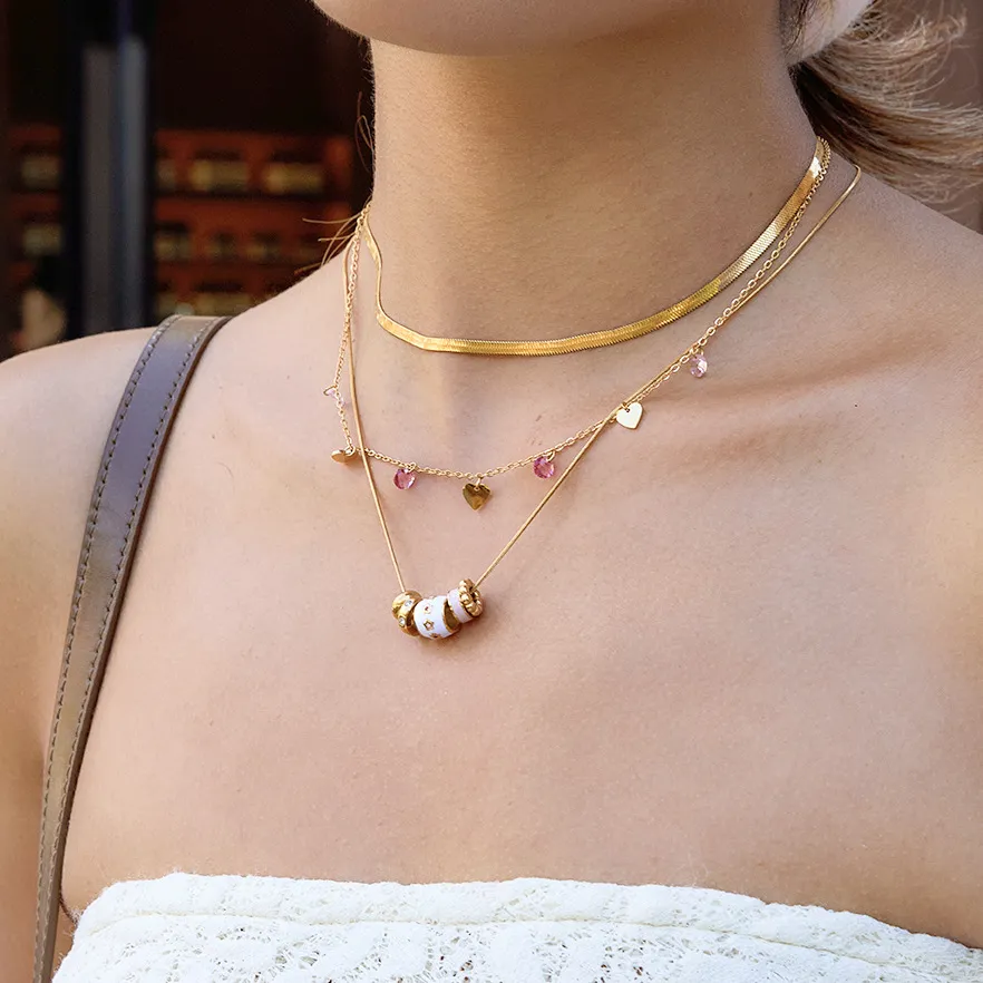 Chez KASANEL, VÉGA est l'allié de la femme moderne qui ne veut pas faire de compromis entre l'esthétique et le confort. Grâce à l'utilisation d'Acier Inoxydable et d'Acier Titane pour le pendentif et la chaîne, il est conçu pour être résistant au ternissement et hypoallergénique. Sa légèreté (7g ) le rend parfait pour être porté sans effort, jour après jour.
