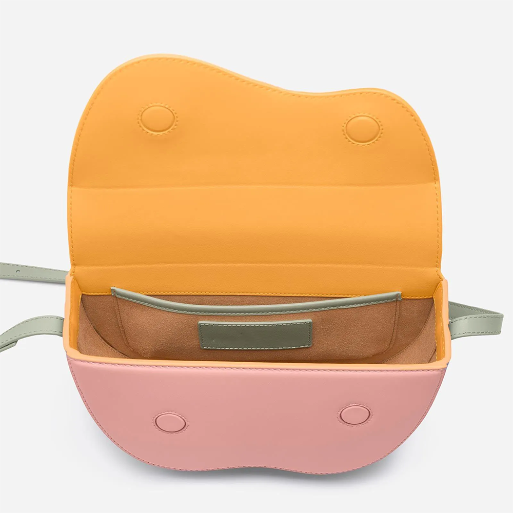 L'Art du Color-Block Sculptural Le Sac Bandoulière ONDINE a été imaginé comme une œuvre d'art portable. KASANEL joue ici sur la tendance du "Dopamine Dressing" (la mode qui rend heureux) avec des associations de couleurs fraîches et apaisantes.