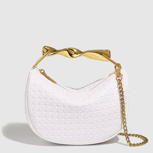 - Design Bijou : Sa poignée rigide en métal doré torsadé n'est pas seulement une anse, c'est un bracelet sculptural qui habille votre poignet.