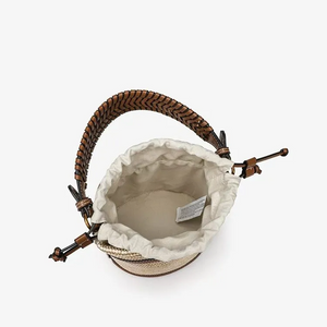 Chez KASANEL, nous avons conçu NOMADE comme un pont entre deux mondes : la décontraction de la matière tressée et l'exigence des finitions maroquinières. Sa structure cylindrique rigide maintient une silhouette impeccable, tandis que son cœur en pochon souple protège vos secrets. La poignée tressée à la main est le détail signature qui transforme ce sac en une pièce de créateur.