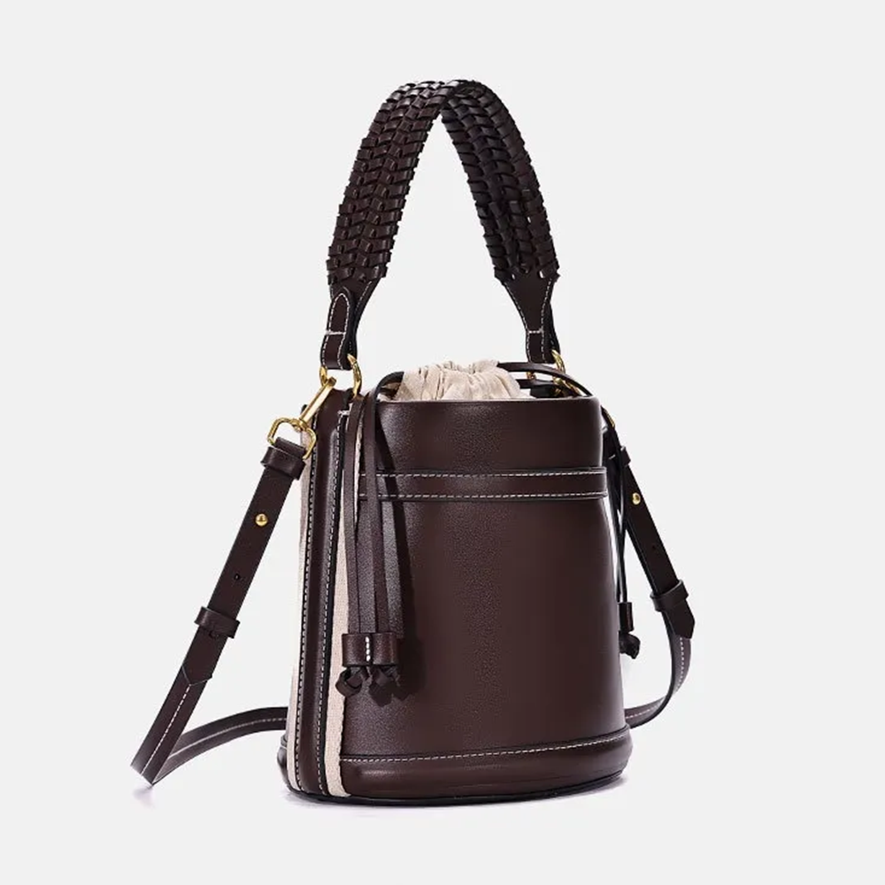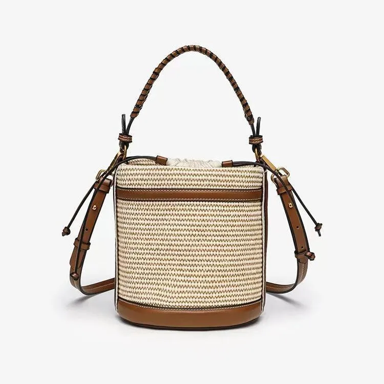 - Duo de Textures : Le mariage du corps tissé (aspect paille ou toile) et des bordures en cuir vegan lisse crée un contraste visuel luxueux et moderne.